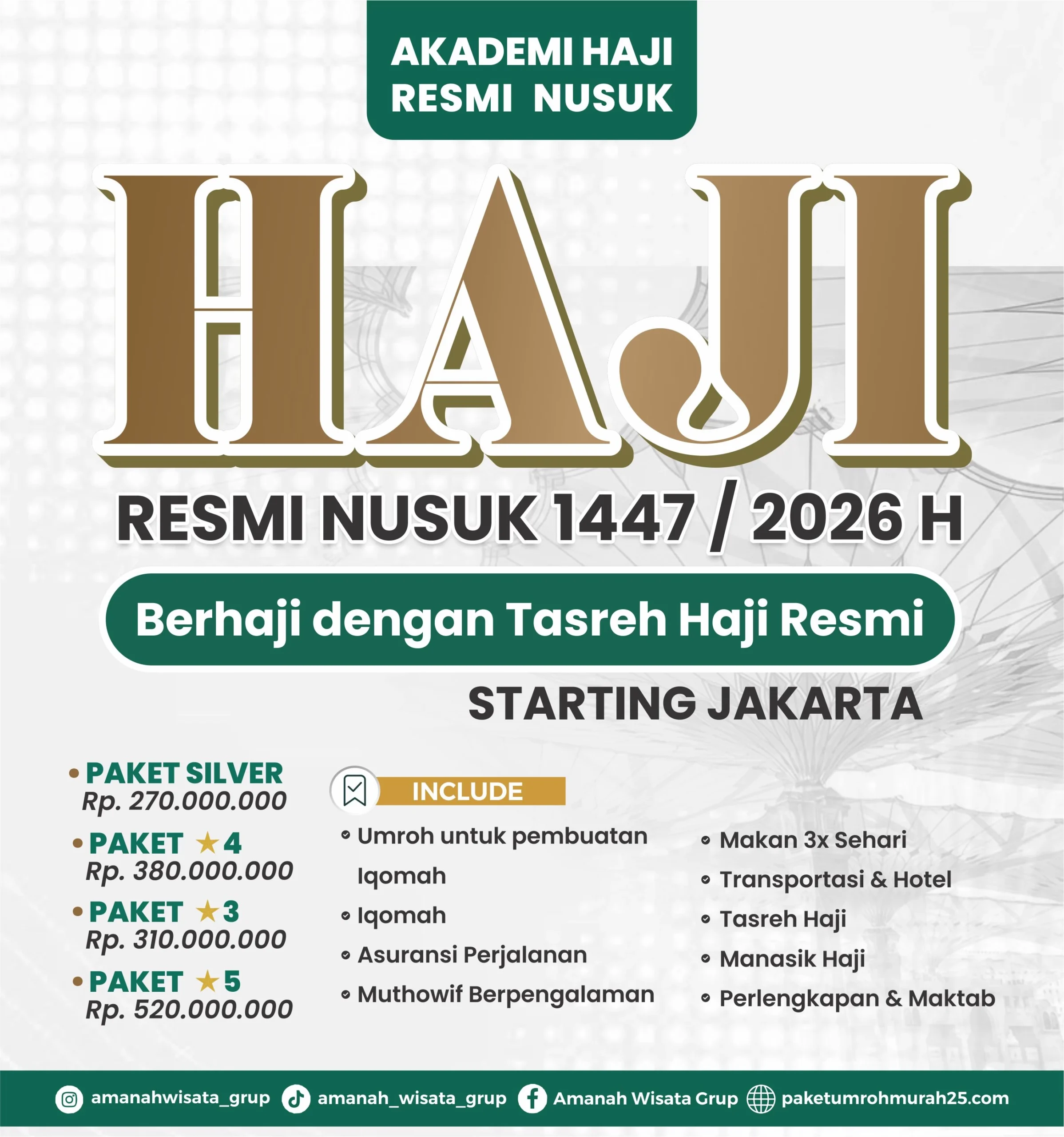 Paket Haji Resmi Nusuk Promo 2026 dari Amanah Travel – paket haji resmi nusuk 1447 H/2026 Berhaji dengan Tasreh Haji Resmi STARTING JAKARTA